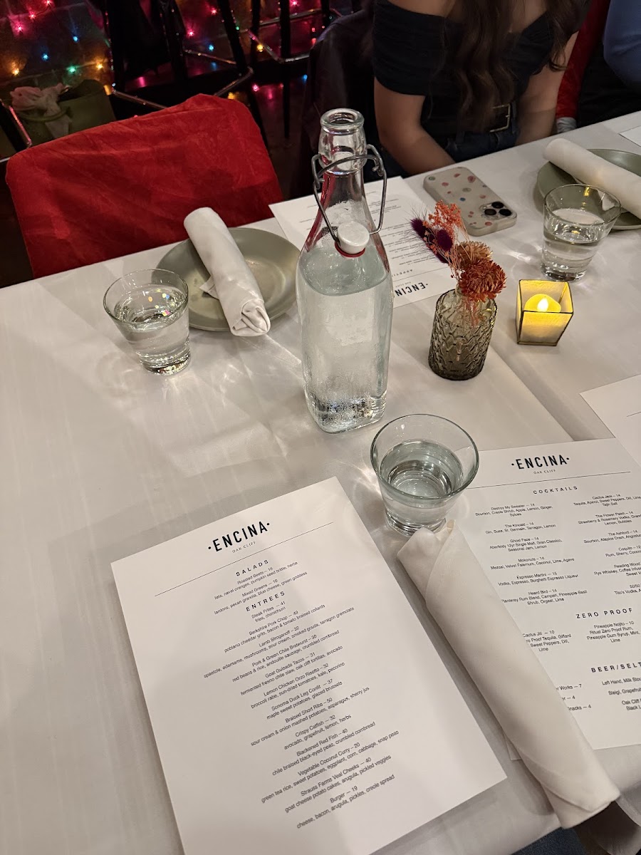 The beverage program is equally impressive, featuring cocktails like the Espresso Martini, The Kincaid, Leona River Mokonuts, and Cactus Jack, alongside a carefully selected wine list that includes Poe, Rosé, California 2018, whites such as Adelsheim, Chardonnay, Willamette, Oregon 2019 and Tatomer, Grüner Veltliner, Santa Barbara, California 2017, and an extensive lineup of Pinot Noir reds like Au Bon Climat, Pinot Noir, Santa Barbara County, California 2018 and Flowers, Pinot Noir, Sonoma Coast, California 2018. Spirits lovers will also appreciate the depth across bourbon, scotch, tequila, gin, rum, vodka, and beer selections. Seasonal offerings, such as the Valentine’s Day 2022 menu with dishes like Mushroom & Goat Cheese Croquettes, Braised Short Ribs, and Goat Cheese Cheesecake, as well as a relaxed brunch lineup featuring Breakfast Flatbread, Egg Sandwich, and brunch cocktails like Strawberry Aperol Spritz and Bloody Mary, further reinforce Encina’s versatility. Overall, the menu feels cohesive and confident, making Encina a standout destination for both casual brunches and memorable dinners.